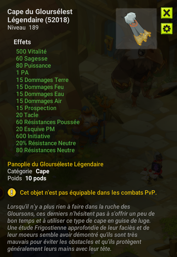- Panoplie complète (Masque, Cape, Ceinture, Amulette, Bottes)